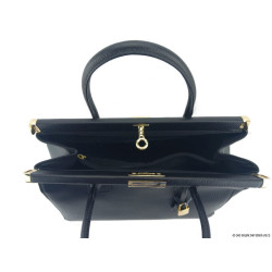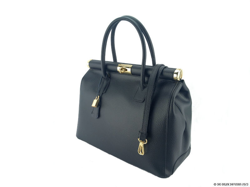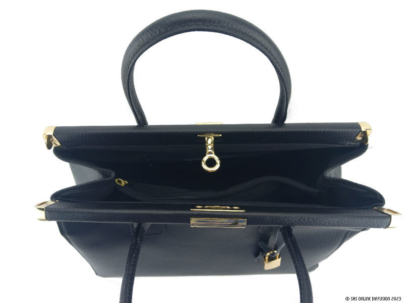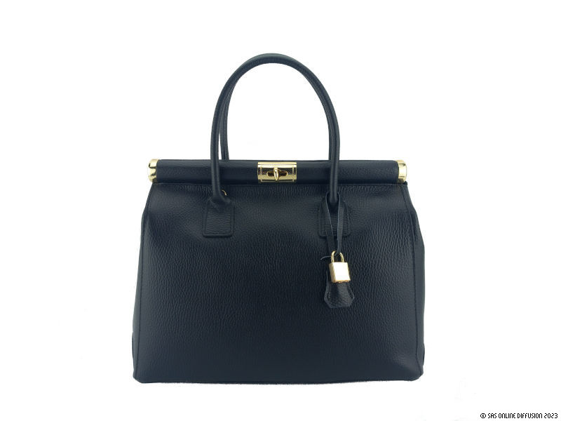 Ce sac à main en cuir grainé noir affiche une silhouette impeccable grâce à sa structure semi-rigide.