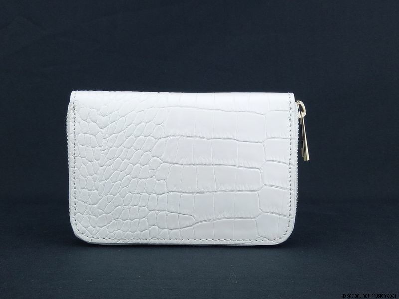 Ce compagnon de voyage est confectionné en cuir épais avec fermeture-éclair. Le blanc éclatant de la couleur met en valeur le bel effet croco du cuir.