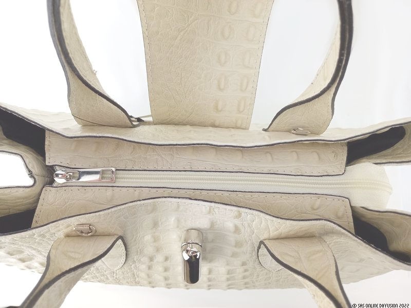 En cuir aspect croco épais et structure semi-rigide, il vous assurera une qualité à toute épreuve. Vous pourrez le porter à votre convenance au poignet, ou à l'épaule grâce à la bandoulière amovible.