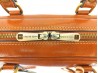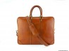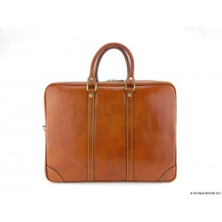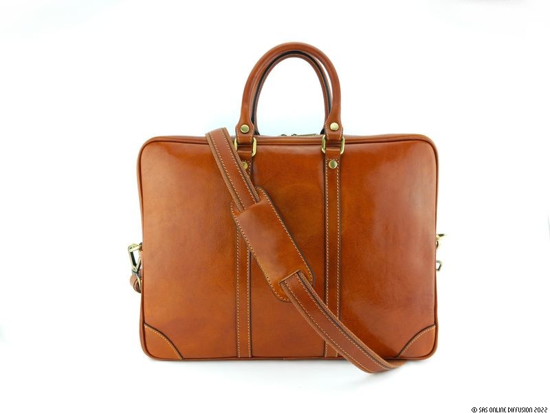 Ce cartable est réalisé en cuir de veau marron traité et tamponné à la main. C'est cette technique qui rend la couleur de ce sac si profonde et lui permet d'offrir des reflets uniques.