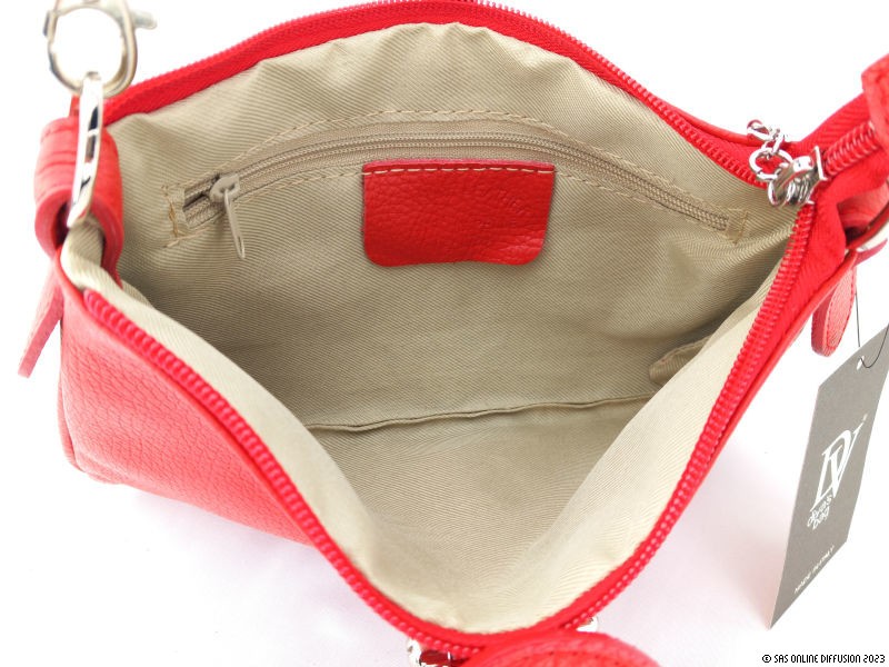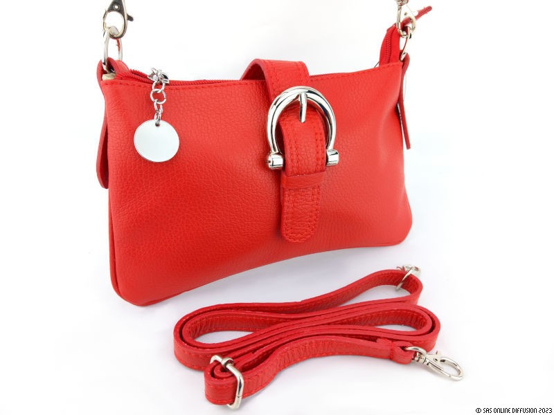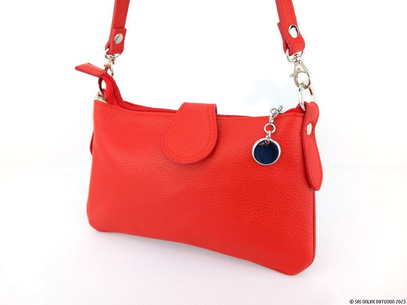 Ce sac pochette confectionné en cuir grainé souple est très agréable à porter.